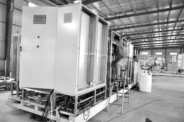 河南省沁润泽环保科技股份有限公司以膜工艺设备制造为主要核心技术,深耕城市生活垃圾无害化处理,大力发展中国高端环保设备制造,根据不同水质、不同出水要求提供污(废)水处理综合方案。今年以来,该公司销售订单大增,产品供不应求。图为7月18日下午技术工人正在冒高温加班生产。