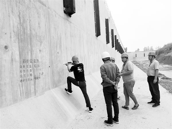 今年以来,市交通质监站认真开展内河航运工程监督服务工作,确保全市内河航运重点工程质量和施工安全,为周口建设“满城文化半城水、内联外通达江海”的中原港城作出积极贡献。图为市交通质监站水运工程监督小组工作人员在周口中心港2号港池检测工程质量。记者 吴继峰 摄