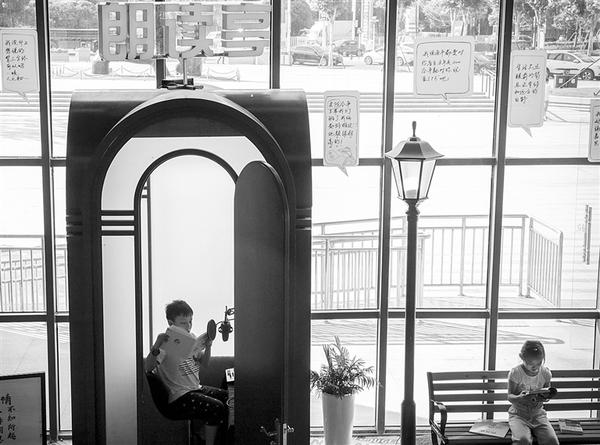 7月17日,在安徽合肥市瑶海图书城内,孩子们在朗读亭内读书。该图书城专门设立了朗读亭,让读者阅读的同时可以朗读自己喜爱的书籍段落,并留下录音上传网络,分享给自己的好友。