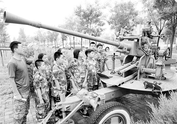 7月20日,参加夏令营的孩子们在迁安市国防教育训练基地参观。暑假期间,河北省迁安市国防教育训练基地开展军事夏令营活动,培养孩子们的意志品质,增强爱国意识,吸引京津冀地区数百名青少年踊跃参加。新华社发