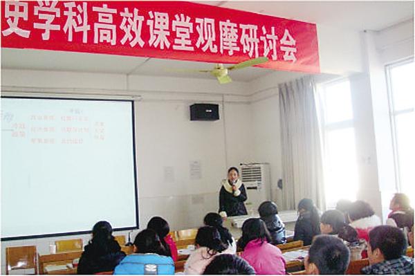 该校一方面建立教师培训中心,每个学期抽出骨干教师对全校同学科教师进行培训,研习教学课堂,提高教学新能力;开展新老教师结对子,互帮互学双促进;聆听专家讲座,拓展教育视野;举行班主任工作经验交流会,相互交流学习。以上措施有力助推了学校教育教学质量的飞速提升。另一方面实行大组听课,探索高效课堂。学校教务处牵头按照学科性质将所有学科分为文理两科,每周固定时间固定地点由文理科中的其中一科公开授课,文科授课时,文科的所有老师都要听课,理科亦是如此。讲课结束,按照高效课堂要求当堂评课,相近学科相互交流。经过不断地探索,学校高效课堂建设有了新的起步,个别学科已经构建起了行之有效的教学模式。
