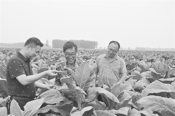 苏运动今年51岁,1992年郑州牧专毕业,在商水县张庄乡工作27年,2011年任副乡长,主抓农业生产,精通各类农作物种植管理技术,由于长期风刮日晒导致皮肤黝黑,被称为“农民乡长”。近年来,在他的指导下,该乡每年种植烟叶1000多亩,收入5000多万元,安排贫困村民100多人在烟田打工。图为他冒着高温天气在大田里察看烟叶长势。②5