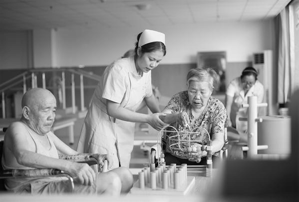 7月24日,安平县春晖养老康复医疗中心康复师指导老人进行智力训练。近年来,河北省衡水市安平县积极探索推进“医养一体、两院融合”新型养老服务模式,将医疗资源与养老资源结合,让老人在养老机构享受更好的健康保障,满足老人多层次的养老需求。