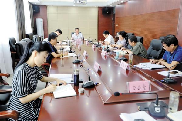 近日,市教育局召开党组中心组扩大会议,学习贯彻省委十届六次全会暨省委工作会议、全市领导干部会议暨上半年重点项目观摩讲评会议、全省学习贯彻习近平生态文明思想百场宣讲活动周口市报告会精神。图为市教育局领导班子在集中学习。 安稳 摄