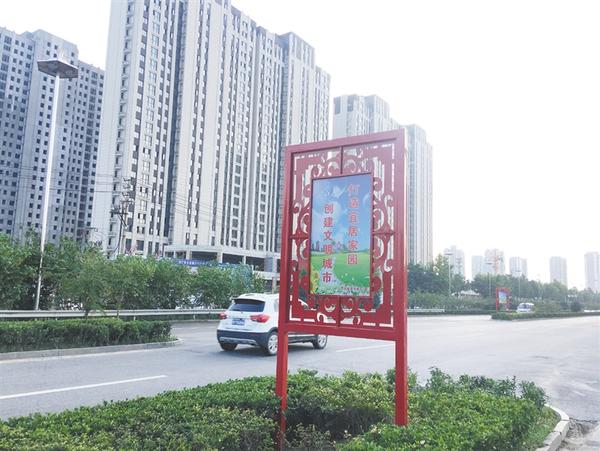 开发区积极响应市委、市政府的号召,强力推进“五城联创”工作,在主要路段设立了公益广告牌,不但美化了市容市貌,还起到了很好的宣传效果。图为开发区在七一东路投放的公益广告牌。②7