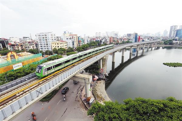 这是8月1日在越南河内拍摄的热滑测试中的轻轨列车。由中铁六局集团有限公司总承包建设的越南首条城市轻轨日前在河内成功完成正线送电和热滑测试,标志着该项目正式具备电客车运行条件,为下一步开展联调联试和商业运营奠定了基础。河内吉灵-河东线轻轨项目于7月31日进行了正线接触轨送电测试,次日进行了列车与接触轨之间运作(热滑)测试,测试结果显示各项参数正常,各项指标符合运行要求。 新华社发