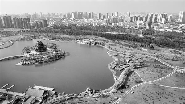 榆林市榆阳区榆溪河公园(8月2日无人机拍摄)。