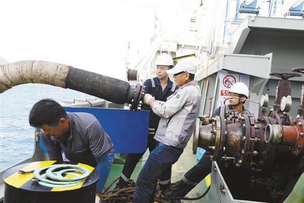 8月7日,在韩国釜山海域,船员进行燃油补给工作。中远“天恩”号货轮7日在韩国釜山海域进入特定锚地,进行燃油补给。这是本次“天恩”轮北极之行的唯一一次补油。8月4日从连云港起航后,“天恩”轮一路向北,将经过白令海峡,进入北极东北航道,沿“冰上丝绸之路”西行前往欧洲。新华社发