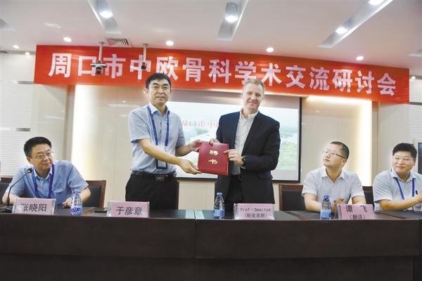 本报讯(记者 刘玉娟 通讯员 郭永伟 文/图)8月7日上午,欧洲骨科专家Prof·Smailys(斯麦莱斯教授)在周口市中心医院与该院的医务工作者进行学术交流,市中心医院院长于彦章、副院长张晓阳,市中心医院骨科大科主任姚树俊、医务科科长毛国璋、骨二科副主任樊书新及该院相关科室医务人员和规陪学员参加交流活动。