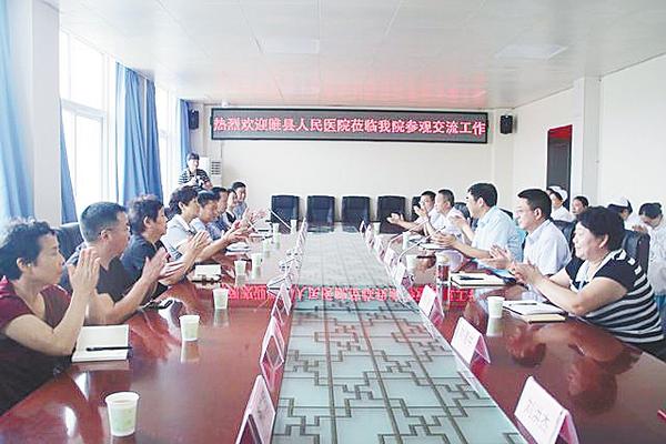 为加强卒中中心建设,8月3日上午,以院长张礼琴为代表的睢县人民医院一行10人来到周口市中心医院参观学习。图为交流现场。