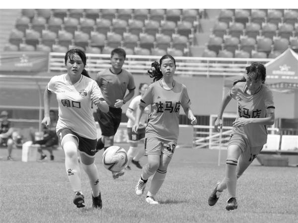 女足比赛于当日上午8时开赛,A、B两组前两名球队展开交叉比赛,以晋级最后的决赛。1号场地是A组的洛阳队对阵B组的焦作队,2号场地是A组的开封队对阵B组的郑州队。经过激烈的角逐,焦作队以1:0的比分力克洛阳队,郑州队以3:0的比分击败开封队。同在B组的两支强队焦作队和郑州队晋级,争夺冠军。开封队和洛阳队争夺第三名。在随后的第五名至第十名排名赛中,周口女足对阵驻马店女足(如图),获得女足第八名。女足总决赛将于10日进行,届时将产生前四名排序。