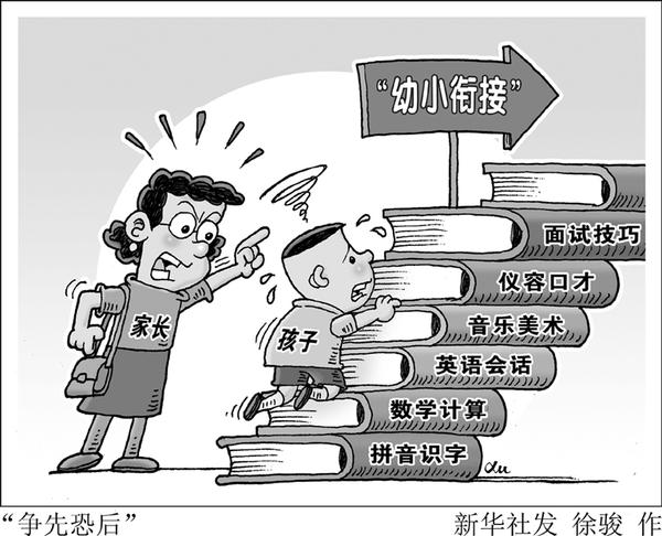 语文、数学、英语、面试技巧、仪容口才……本应恣意奔跑嬉戏的年龄,许多孩子却被家长塞进教室接受“幼小衔接”培训。