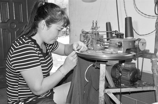 今年以来,商水县实施精准扶贫,大力发展服装代加工,让不能外出打工的贫困群众从工厂领回设备和原材料在家加工,厂方上门进行技术指导并回收成品。图为该县巴村镇董村村民使用厂方提供的毛衣编织机在家加工羊毛衫。