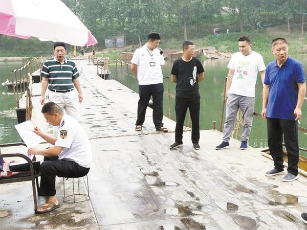 为加强汛期沙河渡口安全工作,8月14日上午,市海事局与西华县交通局联合行动,在渡口所在地乡政府的配合下,对西华县境内李大庄乡马门渡口、叶埠口渡口浮桥进行现场拆解。记者 张猛 通讯员 高雷 摄