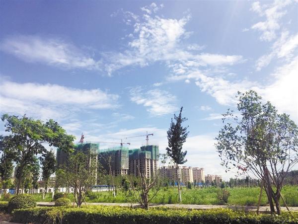 白云悠悠,天空湛蓝。西华县环境污染防治攻坚战成效明显。图为8月13日记者在该县行政新区所拍摄的蓝天、白云。