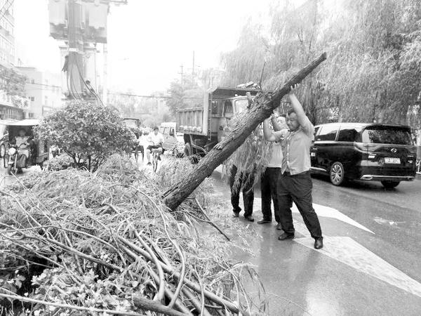在S102西沙河大桥北,暴风雨刮倒路边树木。川汇区公路局接报后,立即组织养护抢险人员冒雨用手和工具清理倒伏树木。下午2时,相关路段恢复正常通车。区住建局积极采取应对措施,各泵站专人值守,正常运行。区水利局备好应急设备,为各办事处排除积水提供保障。区消防大队做好城市内涝救援准备,橡皮艇、救生衣全部到位,确保随时行动。