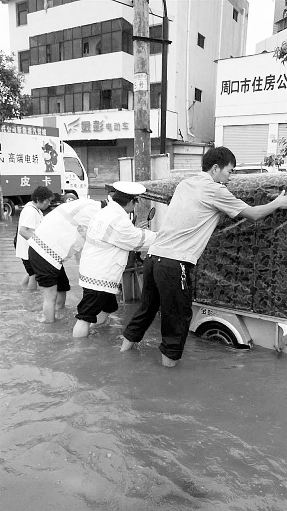姬慧洋 摄 公安民警帮助群众把车移至安全区域。