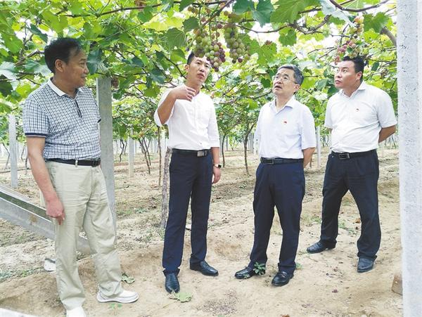 本报讯(记者 韦伟 文/图) 8月18日,县委书记皇甫立新带领县农牧局、县扶贫办有关负责人先后到北城办腾营槐山药种植基地、大辛营葡萄种植合作社、前寨蓝天水产养殖基地和白集镇李竹园黑冬瓜种植合作社实地调研种植养殖产业发展情况。副处级干部、县产业集聚区管委会副主任、北城办党工委书记张晓陪同调研。
