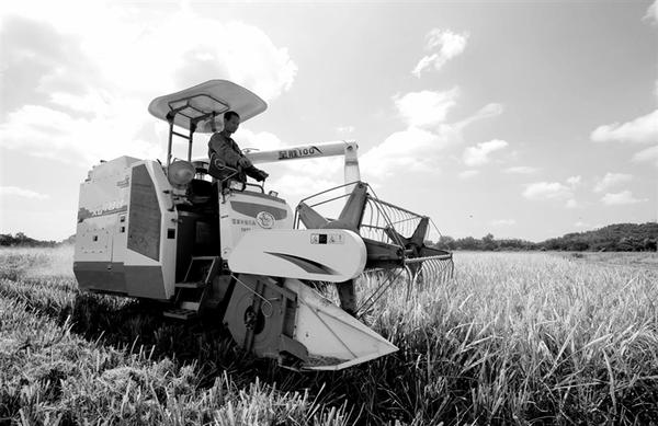 8月22日,江西省靖安县仁首镇石下村农民驾驶农机收割中稻。处暑将至,江西省靖安县种植的中稻成熟,开始收割。蓝天白云下,农民在青黄相间的田野里忙碌,构成一幅幅色彩斑斓的丰收画卷。新华社发