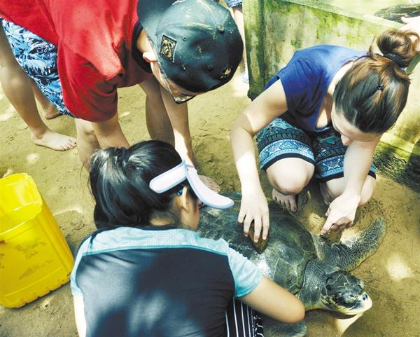 ▲这是2017年在斯里兰卡巴勒皮蒂耶海龟保育中心拍摄的志愿者给海龟刷背。