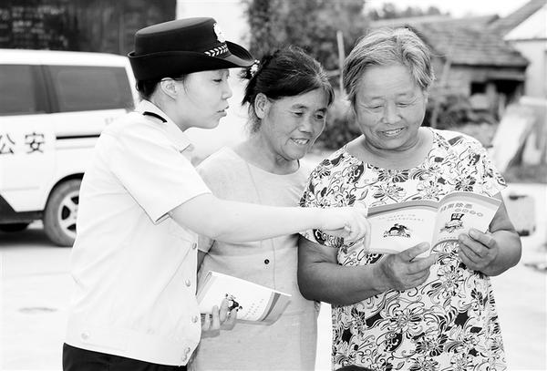 连日来,扶沟县公安局农牧场派出所民警深入辖区农家,通过剖析典型案例、讲解常见犯罪伎俩、发放防范经济犯罪宣传资料等方式,向群众传授各类经济犯罪的防范知识和自救技巧。图为8月23日,民警正在向群众讲解预防经济犯罪知识。②5
