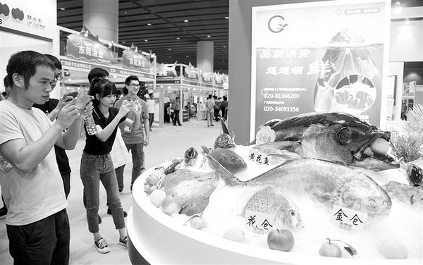 这是博览会上的水产品展位(8月24日摄)。