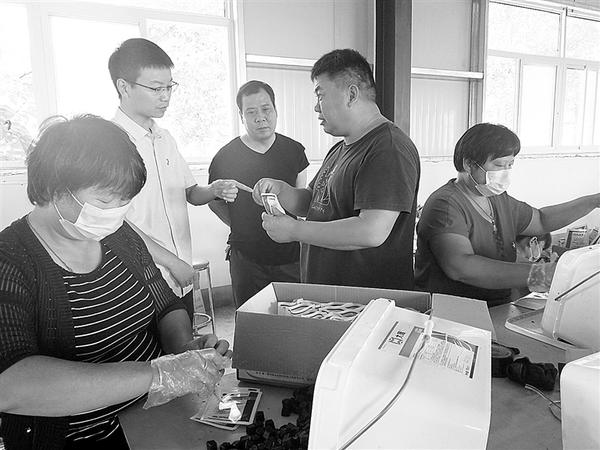 为加快贫困群众脱贫步伐,扶沟县汴岗镇党委、镇政府加大招商引资力度,吸引企业在贫困村建起扶贫车间,为贫困群众打工提供机会。图为8月26日,汴岗镇相关负责人与驻村第一书记在五所楼村扶贫车间了解企业生产及贫困群众务工情况。②5