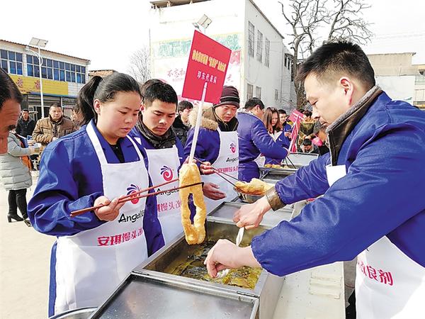 为了让更多的人利用炸油条走上致富路,邓城镇从2012年开始,每年定期举办炸油条大赛,或者是技能培训,请到一些炸油条的大师或者面点专家,免费提供技能培训,给想学炸油条的人搭建一个平台。这个活动也成了当地最为盛大的美食节。目前,炸油条大赛已经举办了6届,参加的人数不断增加,比赛的代表队从刚开始的十几个增加到30个。