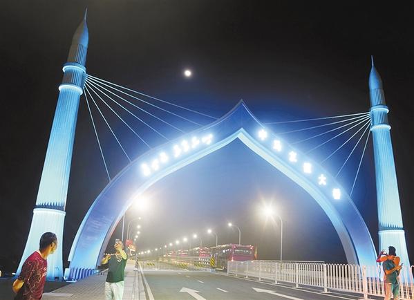 中国援建的中马友谊大桥30日晚正式开通。中马友谊大桥是两国在共建21世纪海上丝绸之路领域的标志性项目。大桥全长2000米,连通马尔代夫首都马累和机场岛,设计使用寿命100年。新华社发