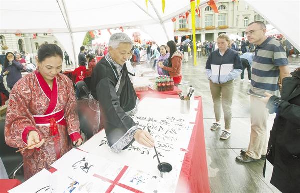 当日,一场名为“遇见中国”的大型中国文化宣传推广活动在伯尔尼市中心的联邦广场举行,来自中国的舞龙、武术、民乐、书法等精彩表演让瑞士民众近距离感受中华文化的魅力。新华社发