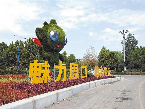 9月3日上午,记者在中心城区文昌大道与周口大道交叉口处看到,为了迎接省十三运会盛大开幕,我市专门在这里设置了精美的景观造型,给城市增添了一抹靓丽色彩。记者 张洪涛 摄