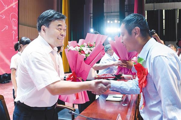 最后,学生代表为刘继标送上鲜花,向曾经的“教育市长”、现在的“教育书记”鞠躬致谢!