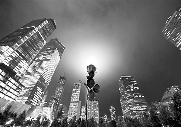 9月11日,在美国纽约的“9·11”纪念广场,一朵鲜花寄托对遇难者的哀思。