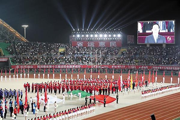 本报讯 (记者 李红 任富强) 9月12日晚,由河南省政府主办,省体育局、省直工委、省总工会、省教育厅、周口市政府联合承办,河南省规格最高、规模最大、影响最广的体育盛会——河南省第十三届运动会在周口市体育中心盛装开幕。继火爆全省的“国字宋河杯”河南省第二届民间品酒大奖赛复赛全面收官后,国字宋河乘着“河南省第十三届运动会唯一指定白酒”的东风,以醇香的美酒接待省内外与会嘉宾和运动员。