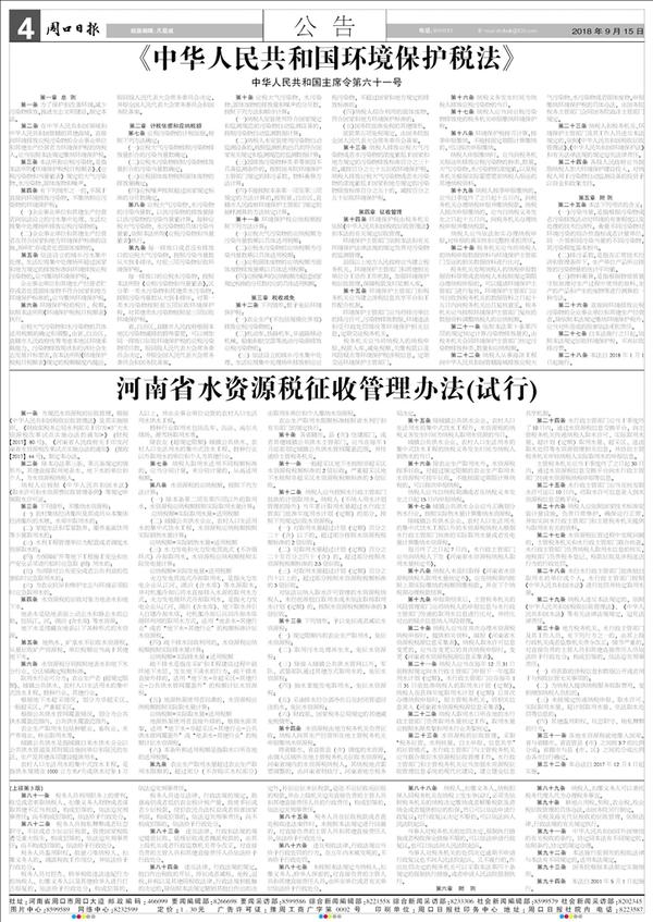 第一条 为规范水资源税的征收管理,根据《中华人民共和国税收征收管理法》及其实施细则、《财政部税务总局水利部关于印发<扩大水资源税改革试点实施办法的通知>》(财税【2017】80号)、《河南省人民政府关于印发河南省水资源税改革试点实施办法的通知》(豫政【2017】44号),制定本办法。