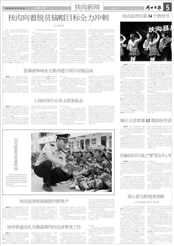 本报讯 (记者 谢永静) 9月6日,扶沟县长张颖波,县委常委、常务副县长王霄灵,副县长任松奎等和中国绿业元集团总裁范国防,就该集团在扶沟投资的项目进行洽谈对接。