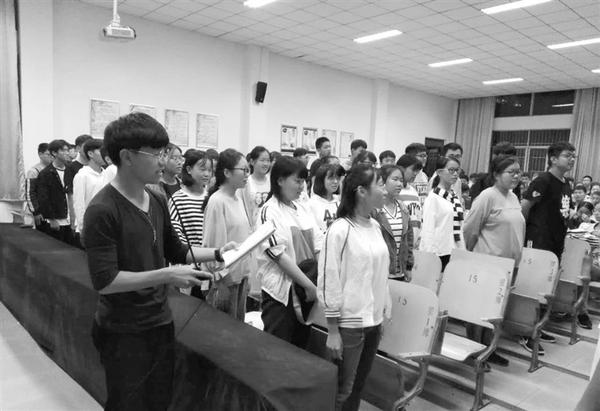 为充分调动学生的学习积极性,增强各班学生的凝聚力,9月12日,周口三高高一年级举行以“比学习看谁劲更足、比卫生看谁更干净、比纪律看谁更规范”为主题的“三比三看”班级挑战动员大会。图为各班代表向挑战班级宣读挑战书。