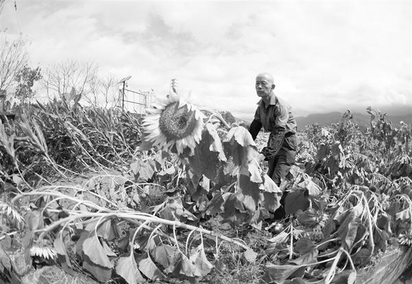 广西武宣:灾后恢复生产忙 9月18日,广西武宣县东乡镇下莲塘村村民扶起被台风吹倒的向日葵。受台风“山竹”影响,广西武宣县4.097万亩农作物遭受灾害。目前,当地农民全力恢复生产,尽量降低灾害对农业生产造成的损失。新华社发