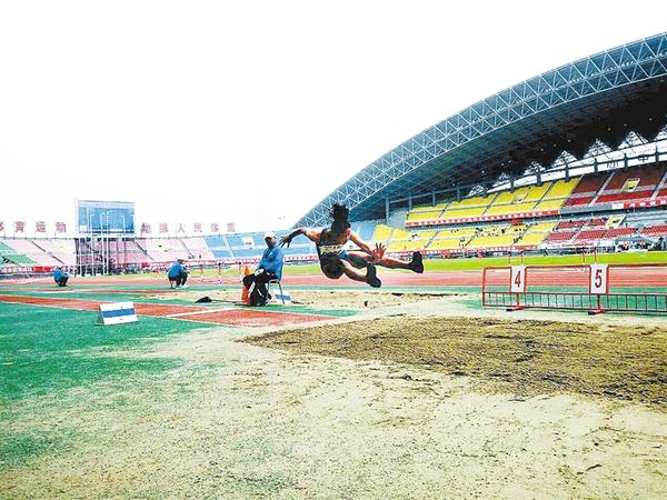 9月19日上午,在省十三运会青少年竞技组田径比赛少年女子甲组跳远比赛中,20名选手经过激烈比拼,洛阳选手郑佳琪以5.42米的成绩获得冠军,开封选手高原获得亚军,洛阳选手安楠获得季军。②8记者 张志新 摄