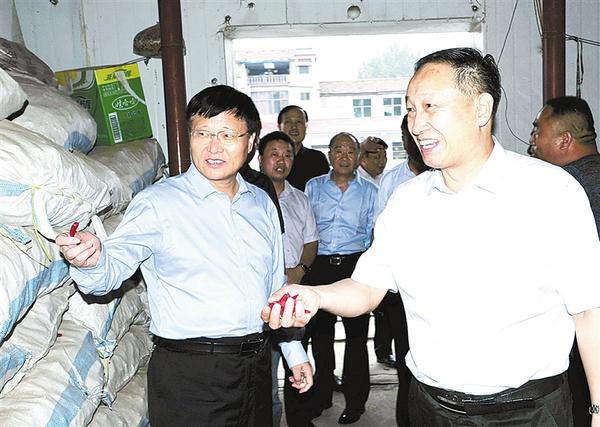 在宋河镇供销合作社辣椒生产储存基地,闫长法一行先后深入到辣椒冷库、辣椒生产车间、化肥销售中心,详细了解土地流转、集约种植、辣椒深加工等情况。