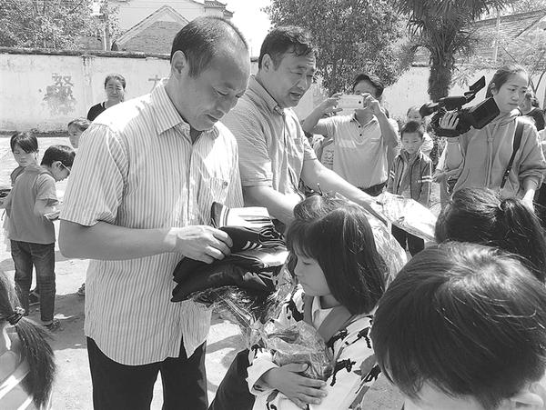 9月21日上午,方凯先后与西华县教体局局长朱中华、团县委书记邓霄一起,前往清河驿乡高古洞小学和迟营乡椿树张小学,为200余名孩子送去价值4万元的200余套新校服。