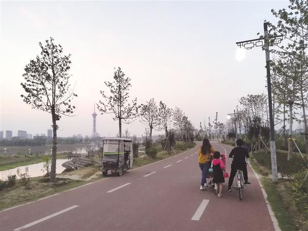 10月6日,夕阳西下,一位家长正带着孩子行走在周口大道桥东侧的沙颍河北岸。今年以来,我市大力实施“一带四林百园”工程,强力推进中心城区亮化美化工程,进一步提升城市形象,为广大市民打造了假日休闲的好去处。