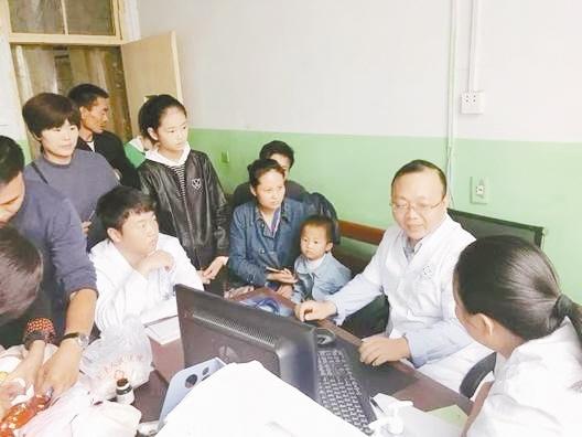 当天,由该院神经外科主任医师刘德中、泌尿外科主任医师李健、泌尿外科副主任医师徐克友、神经内科副主任医师程乾、妇科副主任医师杨莉、内分泌科主治医师杨东辉、呼吸与重症医学科副主任医师闫登峰、儿童重症医学科副主任医师栾永刚、胸外科副主任医师郭庆伟、肝胆外科副主任医师徐建、消化科主任医师赵明、康复医学科主治医师李昊、心内科主治医师邢程等组成的医疗专家团队先后来到鹿邑县人民医院及其分院,开展疑难病会诊及教学查房等医联体帮扶活动(如图一)。当天,前来就诊的患者络绎不绝,专家们为每一位前来就诊的患者进行了细致检查,并制订了科学规范的治疗方案(如图二)。当地群众对这种“在家门口享受大医院优质医疗服务”的活动赞不绝口。