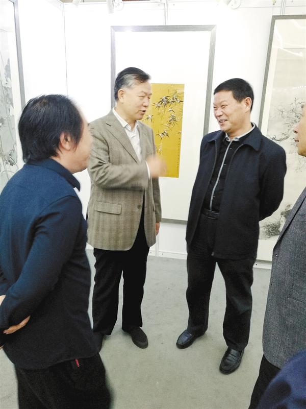 著名书画家理勤功先生也在儿子的陪同下来到荣宝斋,认真观看参展作品,并由衷称赞了家乡书画家作品的艺术成就,希望作为书画之乡的周口在全国的影响越来越大。②3