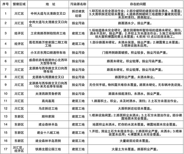 现将所有督查到的问题予以公示,欢迎广大市民监督。如有环境违法问题,市民可拨打举报电话12369第一时间举报。
