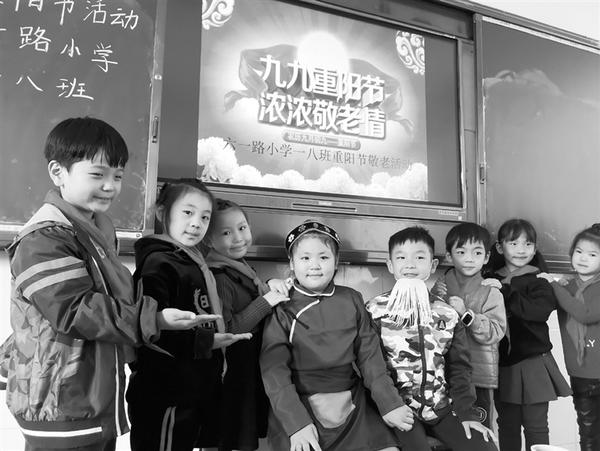 为了传承、弘扬中华民族尊老敬老的传统美德,10月16日,周口市六一路小学一年级八班举行了以“ 九九重阳节 浓浓敬老情”为主题的系列教育活动,孩子们通过角色扮演,体验了一次不同的重阳节风俗。记者 王晨 通讯员 李琨 摄