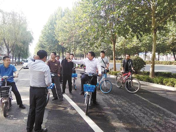本报讯 (记者 韩志刚 文/图) 睁大眼睛找问题,认认真真抓整改。国庆长假期间,区长李宗喜每天都骑着共享单车到各重点项目施工工地、各重点道路现场办公(如图),推进百城建设提质工程和环境综合整治工作。他强调,要从每一个细节做起、每一个问题改起,全力以赴,落实责任,精益求精,以最优的城市形象迎接全省百城建设提质暨文明城市创建工作现场会的召开。
