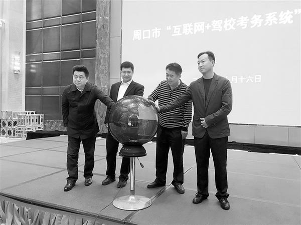 10月16日,周口市“互联网+驾校考务系统”正式启动,将为考驾照的学员们打造一个线上报名、线上缴费、在线考试模拟、线上预约练车的一站式电子商务平台。图为启动仪式。记者 卢好亮 摄