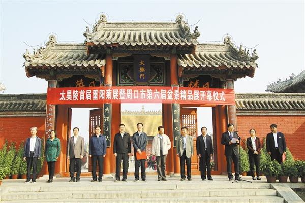 本报讯 (记者 侯俊豫 文/图) 10月17日,精心筹备两个多月的太昊陵首届重阳菊展暨周口市第六届盆景精品展开幕(如图)。县委书记马明超,河南省中州盆景学会会长、河南农业大学教授陈树国,县长王毅,周口市花卉协会会长杜民庄,县人大常委会主任苏中林,县政协主席马自成,县委常委、县委办公室主任冯涛,县委常委、组织部长耿党恩和县处级退休老干部,以及各县(市、区)盆景学会负责人出席开幕式。