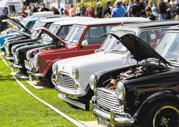 10月20日,在新西兰首都惠灵顿,MINI COOPER老爷车停放在车展现场。120多辆来自新西兰全国各地的宝马MINI COOPER老爷车20日在惠灵顿市中心集中亮相。一年一度的MINI COOPER老爷车展是新西兰MINI COOPER老爷车爱好者和收藏者的交流盛会,迄今已举办到第24届。新华社记者 郭磊 摄